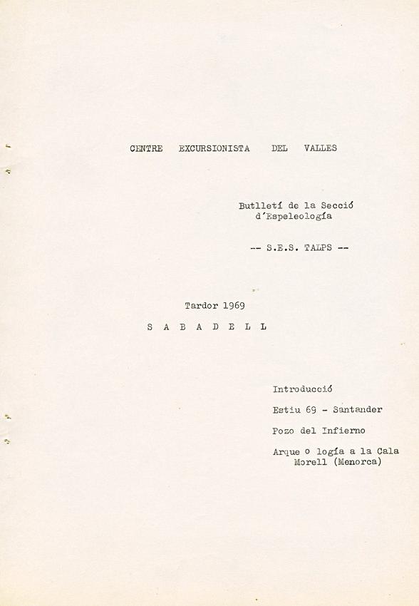 Aquest fou el primer butlletí ciclostilat editat, des del seu inici, íntegrament en català. Destaca en el número 2 la topografia, plegada, del Pozo del Infierno, Cantàbria, amb l'escala de la planta a 1:500.